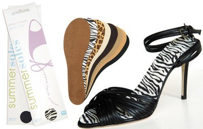 Leather-soled shoes pose two problems during summer months: slimy sweat and blisters. Both can turn your favorite shoes into your worst enemy. Thankfully, Summer Soles offers Animal Print insoles. The super soft suede fabric keeps feet dry and comfortable all day long. Plus, the zebra and leopard prints make shoes as pretty on the inside as they are on the outside. The insoles fit shoes sizes 5-11, just trim to fit. Summer Soles Animal Print insoles, $7.95 or three for $21, SummerSoles.com