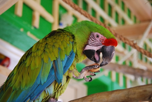 The birds live at Fleiss’ home, where they have free rein to fly, come into the home or perch on ladders and ropes outside. She has found that caring for 19 macaws not only is time-consuming, but expensive, too.