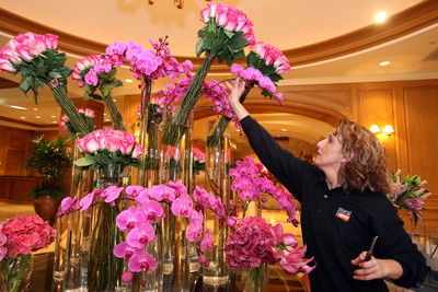 The department is responsible for two wedding chapels, three flower shops, two concierges, 19 restaurants and VIP rooms in all three resorts. Then there are the hotel displays guests see in the lobbies and other common areas. Thirty to 50 additional orders come in each day, Moretti says.