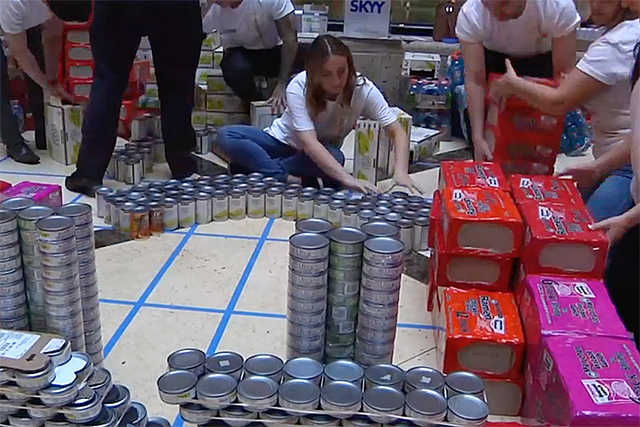 Employees from The Venetian, The Palazzo, and Sands Expo completed against each other in a ”Can Construction” challenge to build a piece of artwork around the theme, “Sustainable Summer” as part of a food drive for Three Square Food Bank.
