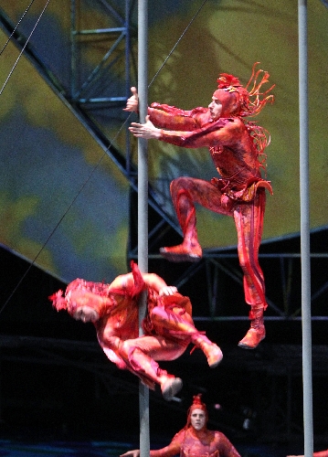 Adding the Chinese pole specialists - the Firebirds - allowed Cirque to add more difficult tricks to the act, which is a highlight of "Mystere," artistic director David Gomez says.