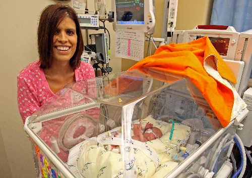 "She made history of a kind here," Rolfe said as he peered at the baby, who weighed just 2 pounds and measured 14 inches when she was born Jan. 19. She is now 3 pounds. "Our sister hospital (St. Mary’s) in Reno does this, but it’s still very unusual in Nevada."
