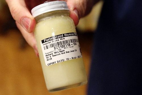 The milk does not come from her mother but from a milk bank in San Jose, Calif.