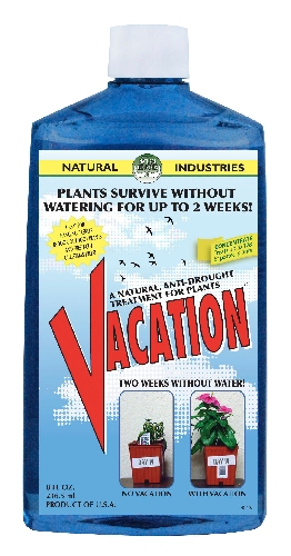 Vacation also can be used to keep poinsettias and other potted plants from drying out. Just mix two capfuls of Vacation with a cup of water (or three ounces per gallon of water). Apply the solution to the entire pot until the soil is saturated. Poinsettias will then survive without water for as many as two weeks.