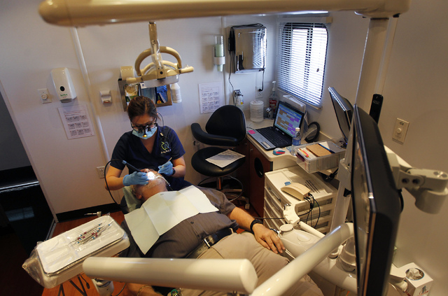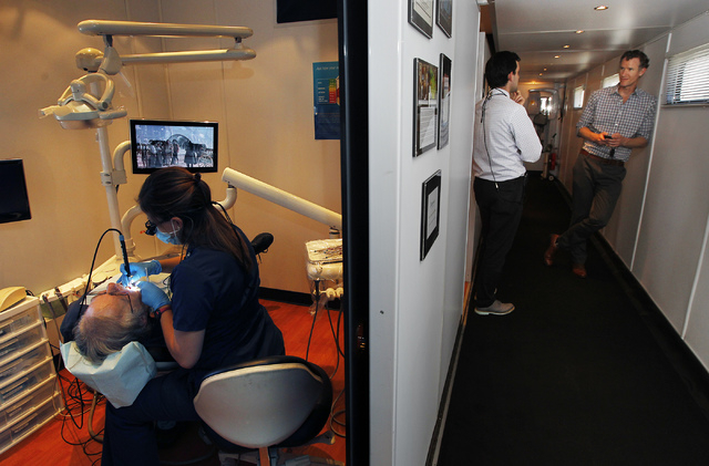 Operated by Access Health Dental, the tooth care business on wheels makes pit stops at high-profile Strip properties such as MGM Grand, Mandalay Bay, Paris Las Vegas, Stratosphere, Luxor, Caesars and The Mirage, treating as many as 20 patients per day. While entirely self-contained with generators, the mobile dental office usually plugs in to hotel power at each stop.