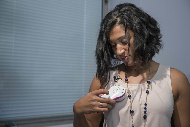 Its use requires no special training, wires or tubes — just a palm-sized remote control that activates a tiny cartridge inside the pouch to pump gas, up to three times a day according to how the woman feels.