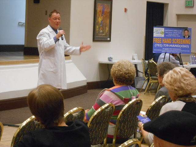 Dr. Jonathan Sorelle is a Las Vegas-based hand surgeon who does more than 2,000 surgeries a year, most of them for carpal tunnel. He spoke to roughly 50 people Jan. 26 at a Sun City Summerlin program.