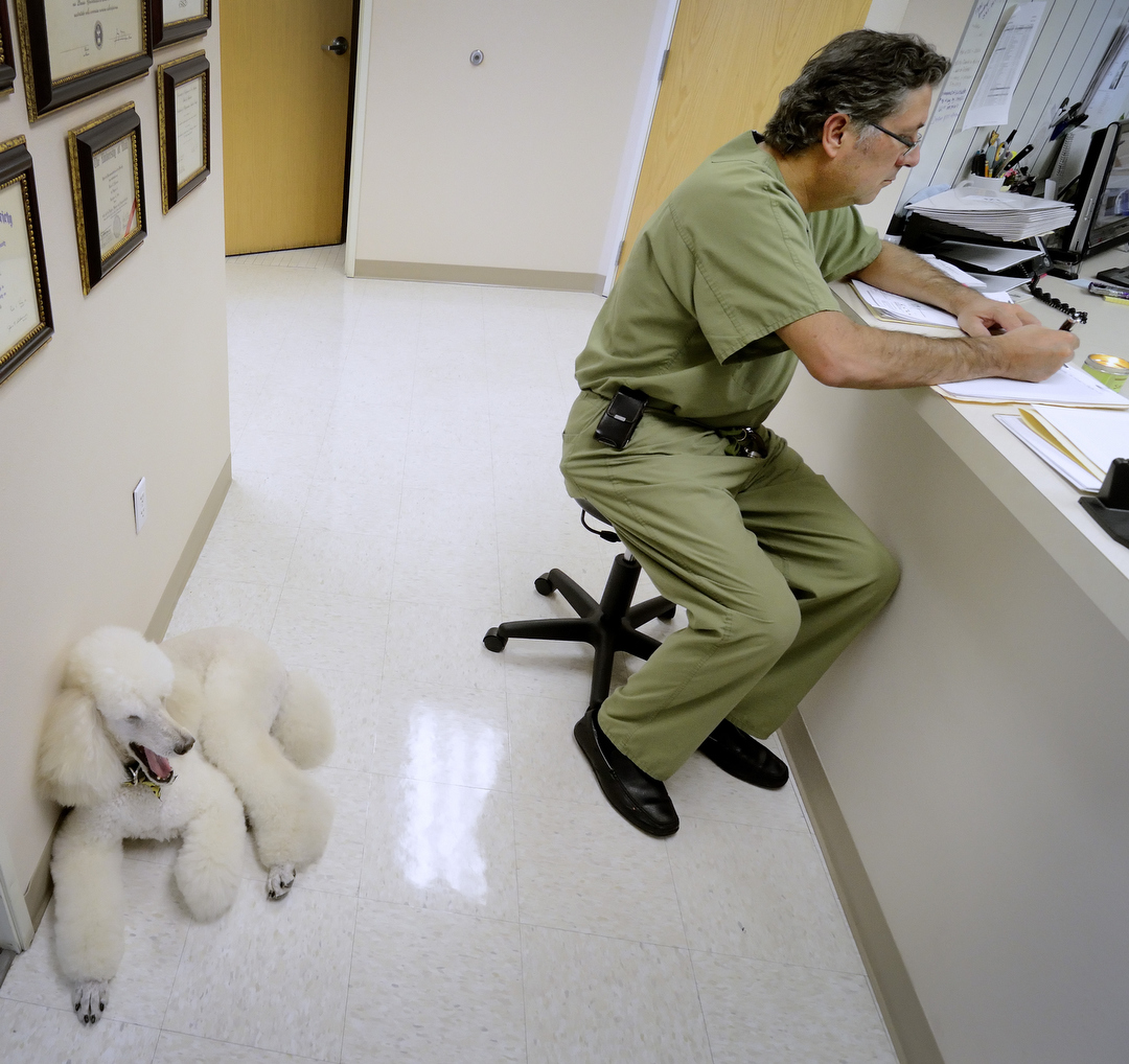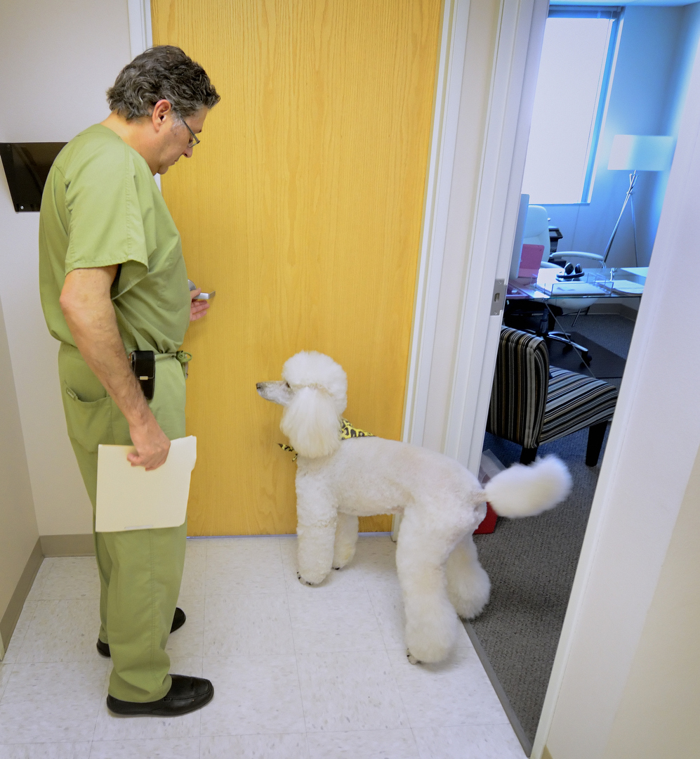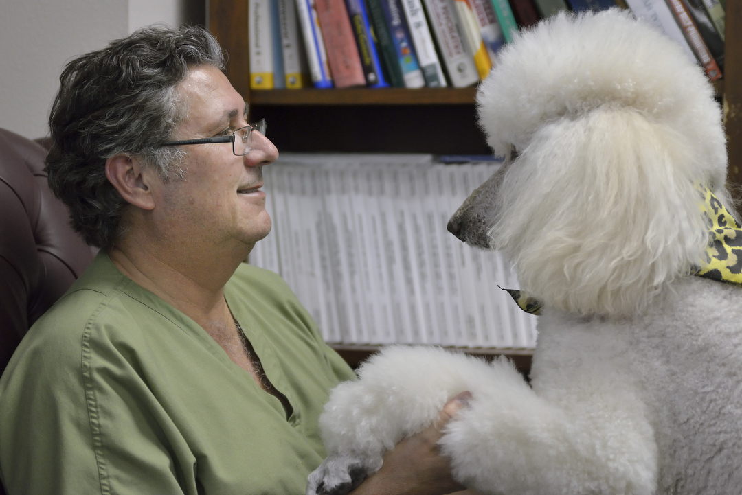 Dr. Kevin Petersen never considered himself much of a dog person. All that man’s best friend business? He didn’t get it. Until a standard poodle named Bounder got him. Now Petersen and Bounder are inseparable. Even at work.
