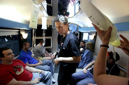 While still a practicing anesthesiologist, Burke has reduced his in-hospital work to concentrate on his growing hangover relief business. About 70 partiers suffering the effects of a hangover – nausea, headache, muscle aches – come to Burke’s Hangover Heaven each week to be cured from what ails them. Burke said some of his clients are vomiting so badly he has to hold their hair back while they begin treatments, which include intravenous hydration, and medication for nausea and inflammation.