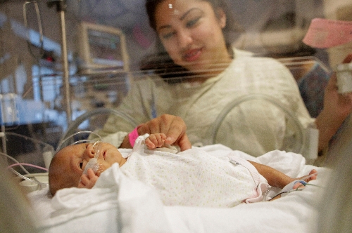 Soon after birth, Melinda was treated for an eye disorder that’s common in premature babies and underwent surgery to close an artery. Melinda’s mother, 22-year-old Haydee Ibarra, held her for the first time after the operation in November.