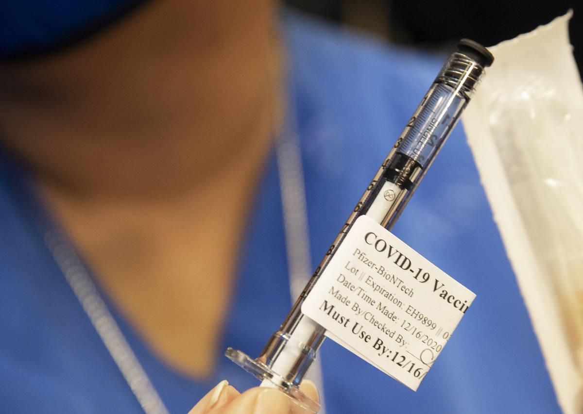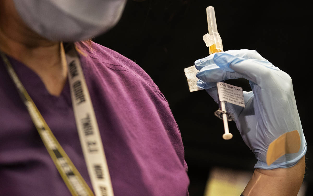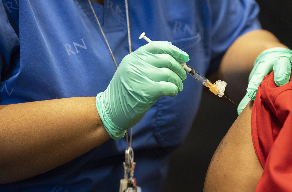 Remiko Ross, a 40-year-old radiology technologist, was among the staff at the VA Southern Nevada Healthcare System hospital getting a shot of the Pfizer vaccine in the morning.