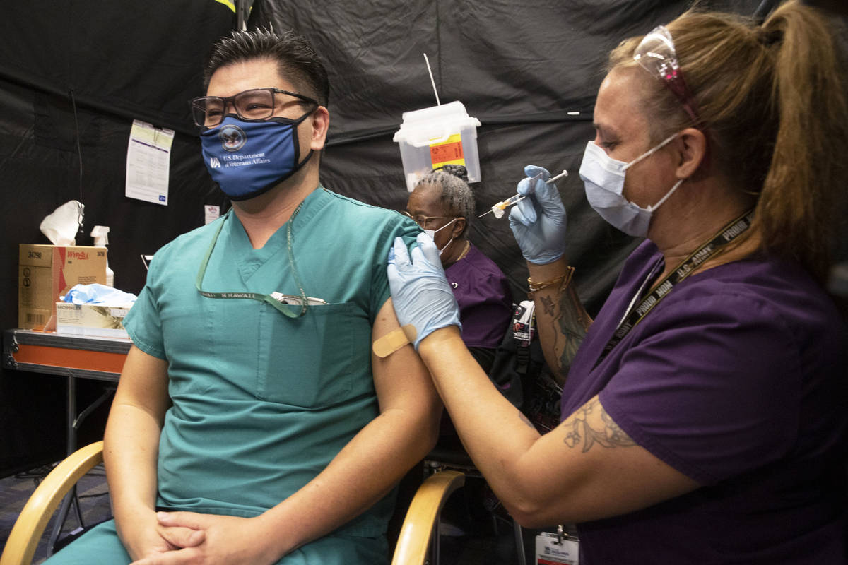 The VA hospital in North Las Vegas, along with most acute-care hospitals in the valley, began to inoculate frontline health care workers against COVID-19 on Wednesday as part of the largest vaccination effort in U.S. history.