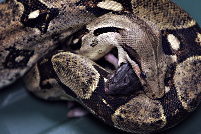After the python tank is cleaned and Clyde slinks back in, I move two smaller snakes -- Prozac the boa constrictor and Jake the gopher snake -- from their cages to the feeding room. (All four were unwanted pets donated to the museum by private owners.) Handling these guys seems like nothing compared to Clyde.