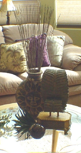 n Keep the theme the same. I wouldn't place a rustic candlestick and a country goose together with an Oriental vase. Instead use a brass candlestick and a swan figurine with the vase. Each item does not have to be Oriental but they should have the same feel.