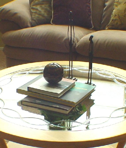 n Are the accessories visually too heavy, too light, too large or too small for the table? You especially need to watch this when you have a small, delicate glass table. But on the same token a large wood table should have substantial pieces.
