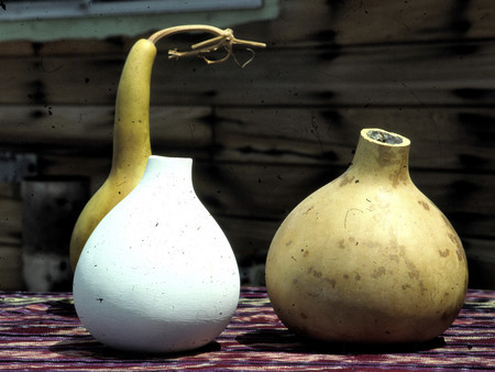 The gourd preceded ceramics in the Americas as containers for food and water. In fact, gourds were the inspiration for the first pots, so there is a great deal of similarity in line and form between the two.