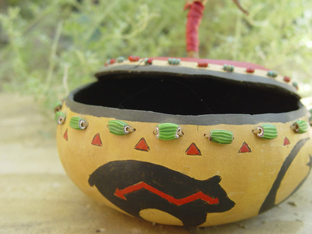 There are two ways to get the best Indian-style pots. You can leave the gourd its natural color and use a simple wood-burning tool to carve your designs, or you can paint the surface any way you wish.