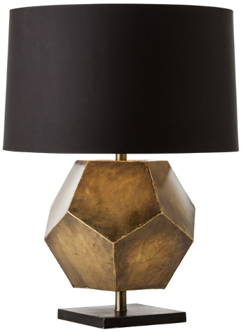 Wayfair’s got faceted décor from several sources. Stacked, smoky, etched-glass facets make a smart-looking Borghese table. Imax’s lemon-yellow ceramic Chantal vase has a chic modern look. Three simple, faceted crystal blocks anchor Safavieh’s Cube fixture, creating a simple yet elegant table lamp. Arteriors’ antiqued-brass faceted table lamp on an iron base has presence and personality.