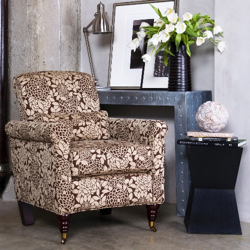 His modern twist means adding traditional elements, such as nailhead trim on chairs and sofas or castered legs, to modern pieces with clean silhouettes.