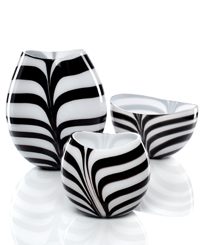 Waterford’s Evolution series has some striking examples of artisanal glasswork. The Menagerie Trinidad vase interprets the markings of a graceful ocelot, while the Nairobi invokes the bold stripes of a zebra. The Agate vase was inspired by the colors and concentric bands of quartz agate. The vases are available at Macy’s.
