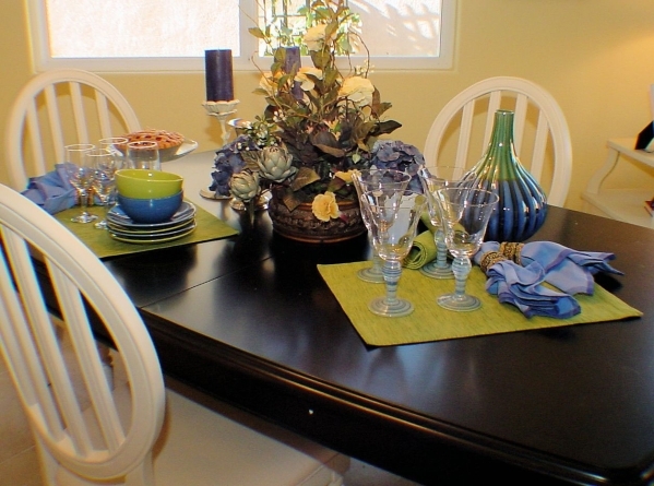 12. Use some fun-colored dishware, placemats and napkins. This is why it’s nice to use white as your main dishware. You can change the whole look out with a few accents pieces.
