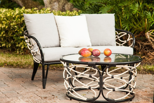 Edgy and fun is the best way to describe the St. Tropez collection from David Francis. Curvy loops of all-weather Cyroplene and Viro fiber woven together create an interesting twist on the more traditional look of wicker. It’s a good choice for an urban or midcentury modern setting.