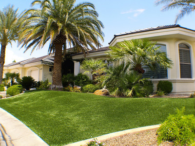 "Our work can be seen at Valley, Rancho, Clark, Arbor View (high schools) and the new soccer fields at McCarran Market Place near the airport," he said. "This gives you an idea of how durable the product is. And if customers don't want the turf in their front yard, then we install putting greens in the back using a metal putting cup assembly just like those on actual golf courses."