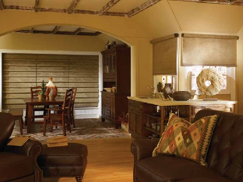 The easiest, if you have a deep window frame, is to add a black-out roller shade behind your existing shade. When the roller shade is pulled up it will be hidden behind your shade headrail.