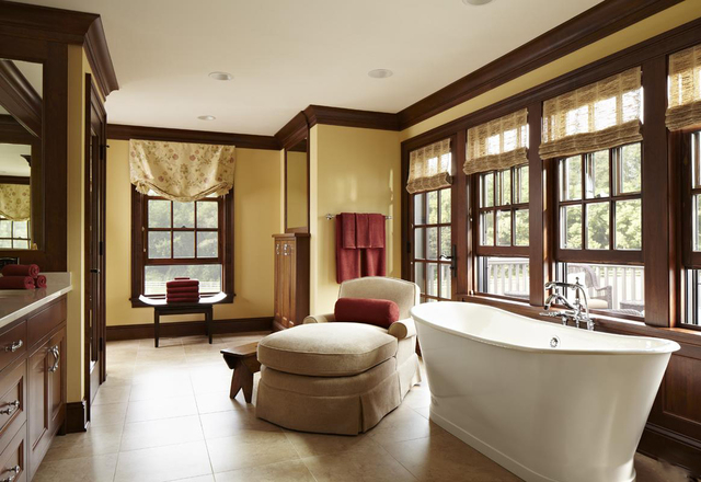 And he’s a fan of using stained-wood moldings in bathrooms.