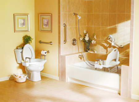 Another consideration are hand grips on the wall next to the toilet. These are available in a variety of designer styles so they can enhance the look of the bathroom while adding safety and support.