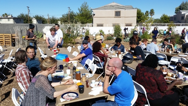 The event was held at the permaculture demonstration garden located within the Vegas Roots Community Garden. The garden is a marvelous nonprofit facility run by Rosalind Brooks, a remarkable woman with a great vision: “to produce fresh food, build young leaders, create neighborhood connectedness and opportunities for contribution, and promote healthy bodies and minds.”
