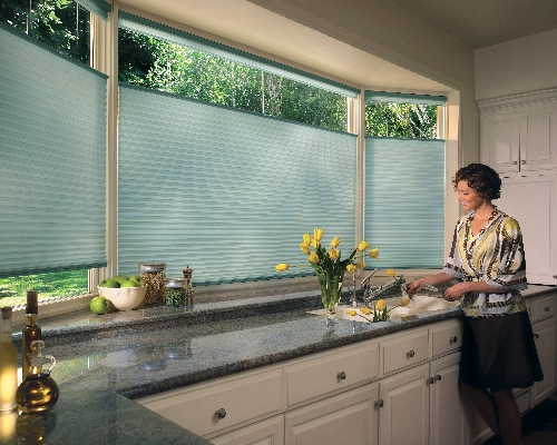 If your shade is the only treatment on the window, consider ordering the Roman shade or woven wood to give your kitchen window some character. If you add a valance or side panels on your window, keep the shade simple by ordering a honeycomb shade.