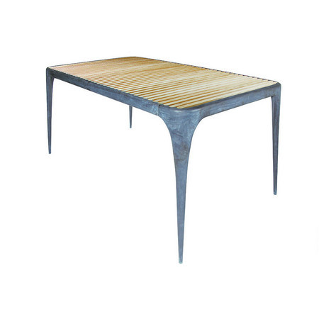 His philosophy has led him to working with recycled materials and sustainable wood products. His Cast Aluminum series uses aluminum from recycled engine blocks and conduits and wood slats from oak that is Forest Stewardship Council-certified to meet sustainable forestry practices.