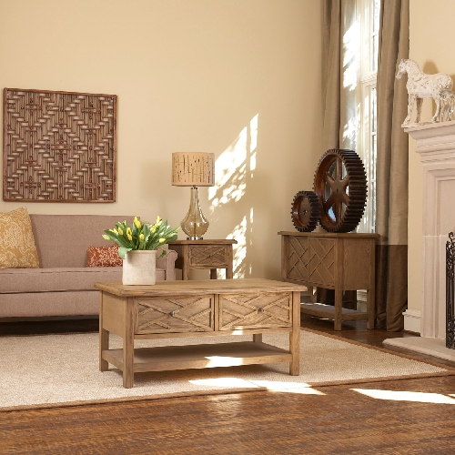 A coffee table that retails for $299, for example, has a distressed tabletop and metal framing. "It looks like it came from the Napa Valley, but you can put your feet on it. I don't want there to be any 'Oh my God' moments that you scratched the table. This is beautiful, livable furniture. You can't feel like you're living in a magazine spread."