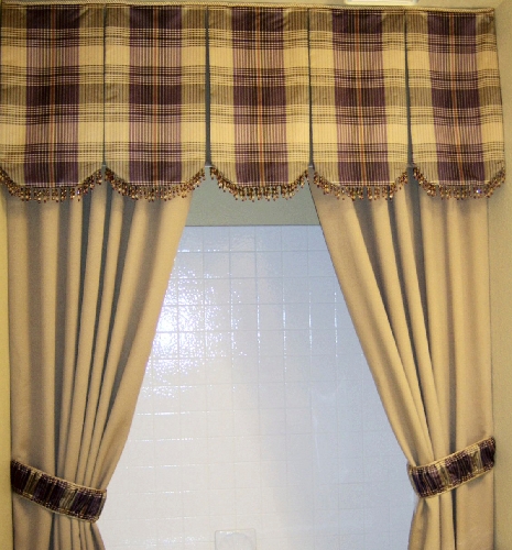 5. Want to dress up your hall bath? Mount a fabric shower treatment from the ceiling. If you can't afford to have the whole treatment custom made, use store panels and just customize the valance. We rarely have guests, so I keep the plastic liner in a drawer until I need to use it. If you use it on a regular basis look for a waterproof fabric liner.
