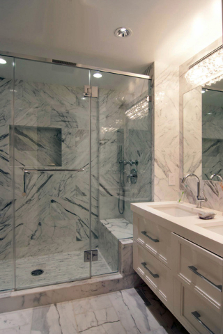 Carolyn DiCarlo, also a New York architect and designer, agrees and says more homeowners view the room’s purpose as a place to shut the door and enjoy their own personalized daily rituals. And although some may equate this space with excessive energy and water consumption, Los Angeles designer Sarah Barnard thinks the room has become more environmentally sensitive, particularly in California where stricter guidelines already are in place.