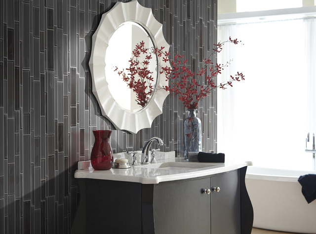 Luxury textured finishes are gaining a following. DiCarlo suggests rich mahogany or walnut cabinetry; resin for tubs and sinks instead of cast iron or enamel; and bronze, gold and tinted glass accents.