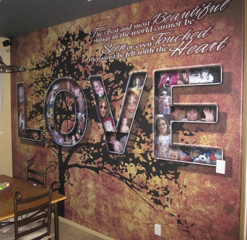 In the featured photo, Marsell has used a large dpi (dots per inch) picture for the background and inserted the word “love.” Inside the wide letters are pictures of his family and friends. I am sure they love to go up to this wall and find themselves in the mix of photos.