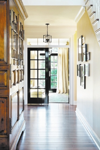 Or, design a montage of art mixing dissimilar pieces, like a friend did in her entryway hall. Do you have a wonderful collection of family photos? Feature them in a hallway that connects the home’s bedrooms. For a more professional, classic look, use a generous amount of cream or white mat when you frame the photos.