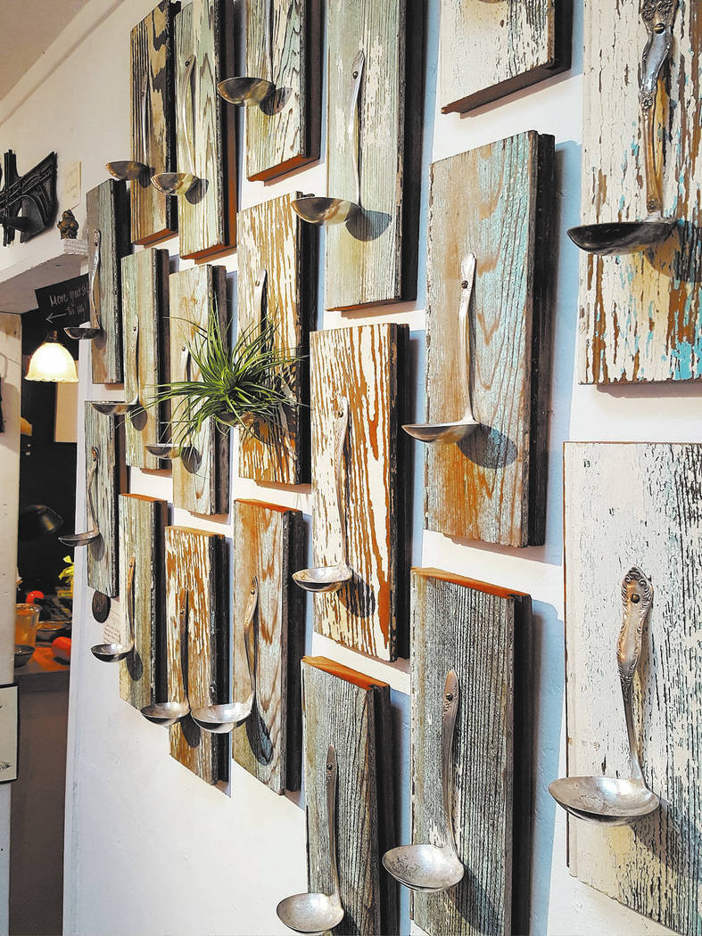 The Junk Girls’ ladle boards combine old chipped painted wood from demolished midcentury homes with the useful kitchen item, making the mundane richly aesthetic.