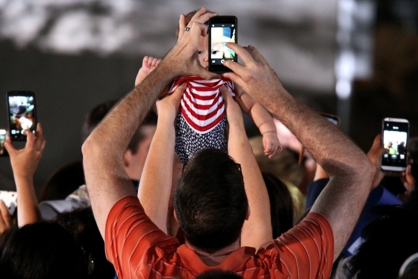 A baby is photographed as democratic presidential candidate Hillary Clinton leaves the stage after her speech at Springs Preserve in Las Vegas Wednesday, Oct. 14, 2015. Erik Verduzco/Las Vegas Review-Journal Follow @Erik_Verduzco