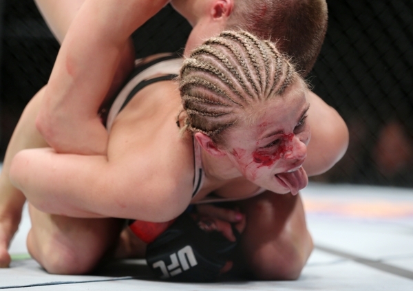Paige VanZant makes a face at her opponent‘s corner in her womenþÃôs strawweight bout against Rose Namajunas at the Cosmopolitan casino-hotel in Las Vegas Thursday, Dec. 10, 2015. Northcutt won by unanimous decision. Northcutt won by way of submission in the fifth round. Erik Verduzco/Las Vegas Review-Journal Follow @Erik_Verduzco