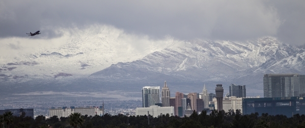 Snow covered mountains are seen on the west mountains of The Strip in Las Vegas Monday, Feb. 23, 2015. Erik Verduzco/Las Vegas Review-Journal Follow @Erik_Verduzco
