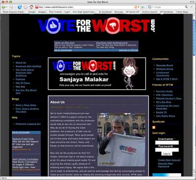 We don't have to. The rest of America pretty much has that covered. Howard Stern. The guys at VoteForTheWorst.com. That strange woman on MySpace who vowed to go on a hunger strike until Sanjaya received the hook. (She failed.)