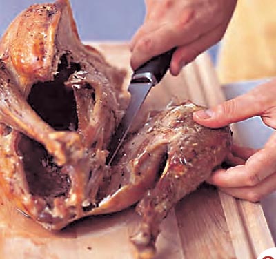 Roast turkey in a preheated 325-degree oven about 21/2 hours, basting with pan juices.