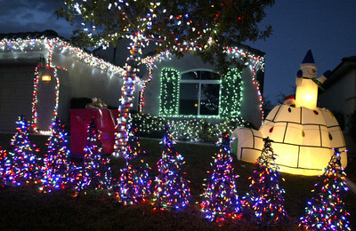 In addition to the lights, Creed has 16 3-foot Christmas trees, an igloo with Santa and Frosty, a North Pole with a Star of Bethlehem, a snowman and net lights on the ground to look like snow.