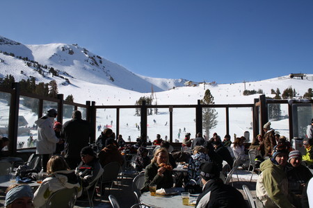 We were staying at Mammoth Mountain Inn, located slope-side in the Main Lodge area of the mountain. Our room had a loft and slept four comfortably, yet seemed small once we brought in all our bags and ski stuff. But you don't go to Mammoth to spend much time in your room. The front lobby merged into a large living room with a fireplace, the main gathering place for families. An upstairs bar, which overlooks the mountain, served as the meeting place for adults. And the property also has a heated outdoor pool, three indoor hot tubs, and one outdoors.