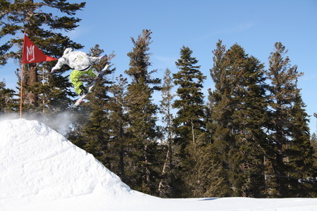 That afternoon, we headed over to an area that we found full of freestyle terrain, frequented mostly by boarders, but some skiers enjoy it as well. We had so much fun here we ended up staying a couple of hours. Mammoth's Unbound Terrain Parks are made up of seven parks and three pipes, on more than 90 acres. There is something for everyone, from beginner to expert. Those new to terrain parks are advised to start at Disco or Wonderland parks, move up to an intermediate park such as South Park and for advanced riders there is Main Park. Even if you aren't up for the challenge, it's worth heading over to Main Park to watch the experts on the 22-foot tall Super Duper Pipe, which opened in February 2009. It is 500 feet long and 62 feet wide.