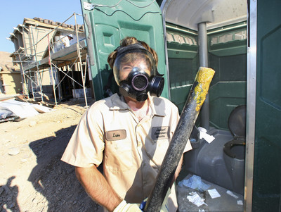 "Go past the solid part and get to the liquid," Sapini instructs as I sink the head of a vacuum hose into the squishy, blue-brown abyss at the bottom of a Hampel Global Portable Restroom.
