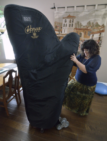 Wayne Newton brought Kim Glennie and her harp to Las Vegas 30 years ago. The harp weighs 100 pounds and bringing it to work in her Ford Explorer involves sheets, padding, cardboard, a padded harp cover and a special dolly.
